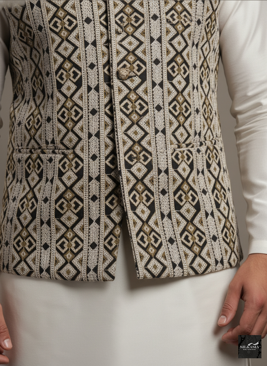 Elevate your ethnic wardrobe with this masterfully crafted waistcoat, designed for the modern man who appreciates traditional luxury.